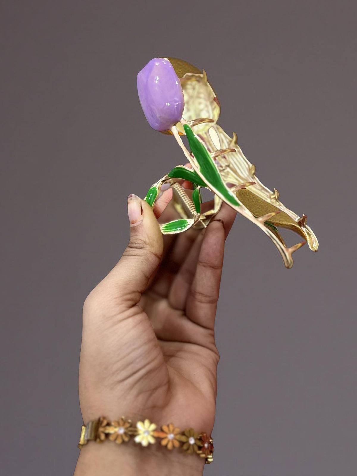Be the first to review “Lavender Petal Gold-Plated Brooch Hair claw clip”